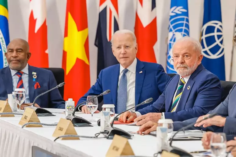 Na sessão “Trabalhando Juntos para Enfrentar Múltiplas Crises”, em que se sentou entre o presidente dos Estados Unidos, Joe Biden, e o primeiro-ministro do Canadá, Justin Trudeau, Lula lembrou sua participação no G-7 de 2009, após a crise financeira global, que levou posteriormente à criação do G-20.