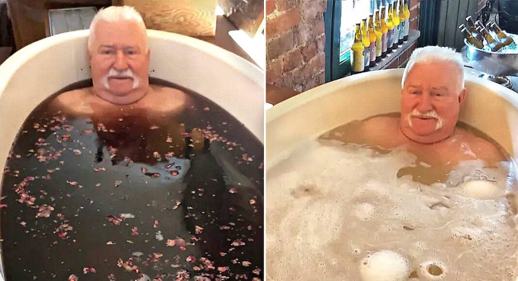 Ex-presidente da Polônia e ganhador do Nobel da Paz de 1983, Lech Walesa voltou ao noticiário de uma maneira inusitada. Nesta semana, ele publicou fotos nas redes sociais em banheiras repletas de vinho e cerveja, chamando a atenção da mídia e dos seguidores.