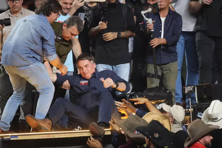 Durante a Festa do Peão de Barretos, o ex-presidente Jair Bolsonaro (PL) acabou se desequilibrando no palco, caiu e foi rapidamente levantado por aliados. O incidente ocorreu momentos antes de Bolsonaro discursar no evento na sexta-feira, 25.