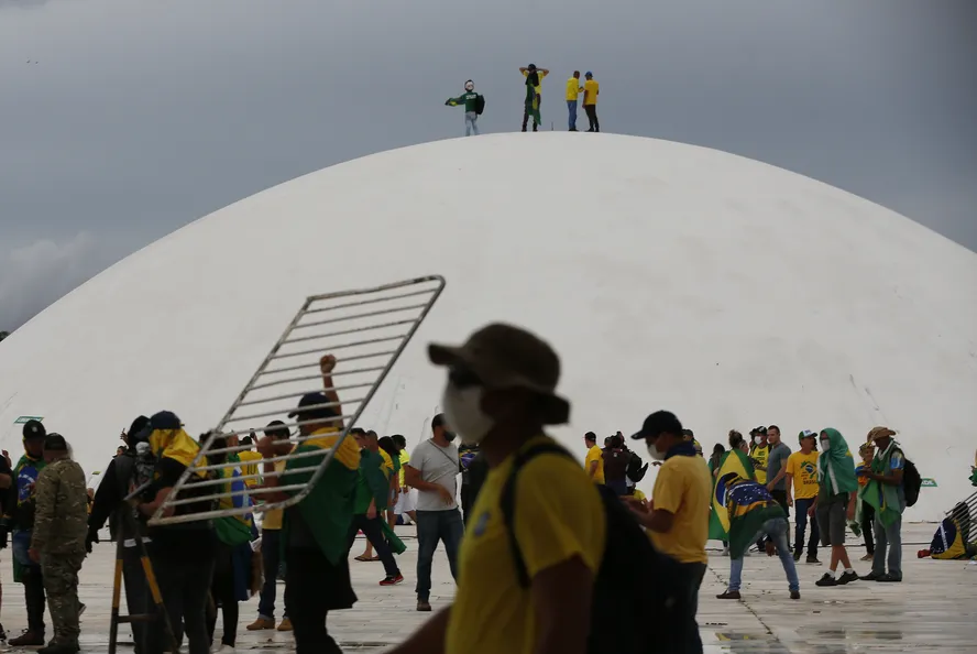 O mesmo método foi usado na invasão do Palácio do Planalto. Nesse caso, os gradis ajudaram os golpistas a alçar a entrada principal do palácio, que só pode ser acessada da rua por uma rampa.