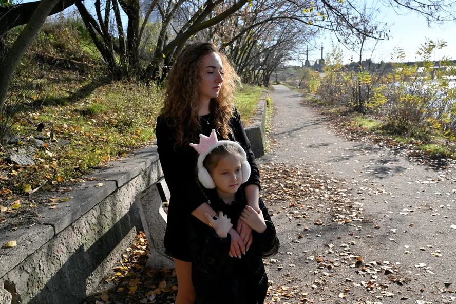 A cerca de 400 quilômetros de distância, na capital do país, Kiev, Diana, de 8 anos, dança sobre folhas secas em um parque à beira do rio Dnieper. A menina e sua mãe, Anna Lyashko, 28 anos, retornaram de Israel em meados de outubro. Eles fugiram da Ucrânia em março de 2022.