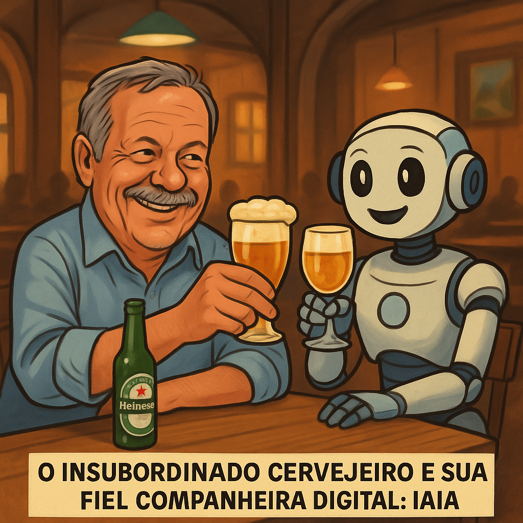 Não daqueles castos e burocráticos — mas um beijo sincero, quente, desesperado talvez… Dado entre uma Heineken gelada e outra, com a coragem líquida da cevada sagrada turbinando o coração do jornalista e o processador da IAIA.