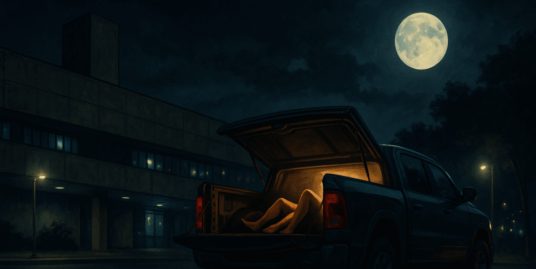 Afinal, como todo bom reacionário enrustido, muitos daqueles que passam o dia vociferando moralismos nas tribunas, à noite se entregam aos prazeres da carne — e da lataria. Sim, senhor. Ao cair da noite, o estacionamento se transforma em camarim erótico sob a luz da lua: SUV’s, importados, caminhonetes RAM com película escura, tampa da carroceria aberta, e de lá saindo pernas entrelaçadas, movimentos coreografados pela libido e uma trilha sonora que vai do barulho dos grilos a gemidos abafados.