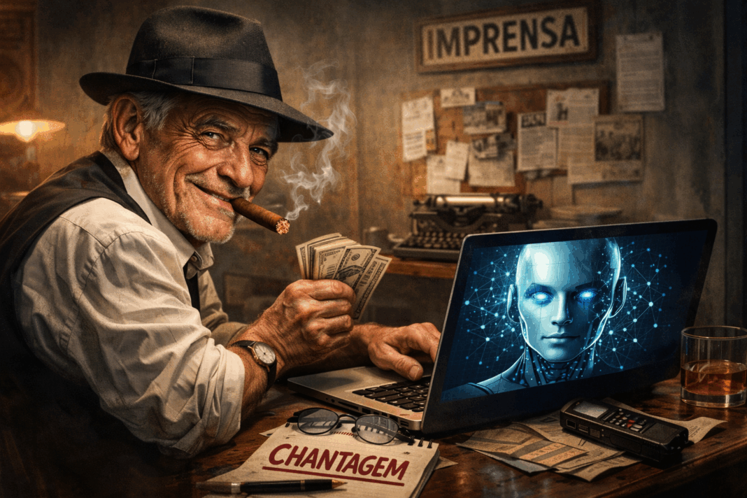 É a velha imprensa marrom, agora de fraque, cartola e linguagem pasteurizada. Antes precisava de gráfica, contatos e rua. Hoje basta um layout limpo, uma IA condescendente e a completa ausência de caráter. Cria-se o problema no texto para vender o silêncio fora dele. Chantagem com corretor ortográfico. Extorsão com parágrafo bem escrito. Lavagem de dinheiro com selo de “opinião”.