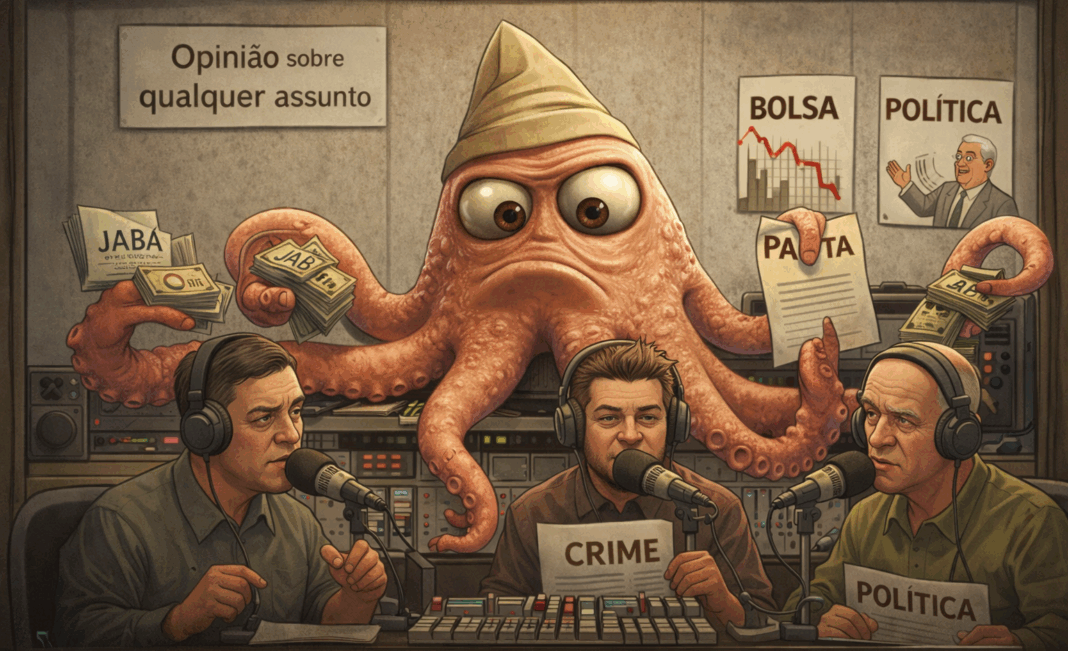 Foi assim depois da publicação da crônica sobre os jornalistas-polvos. O texto descre uma espécie bastante conhecida no ecossistema do rádio interiorano: profissionais capazes de comentar, no intervalo de uma única manhã, um crime ocorrido na madrugada, o resultado da rodada do futebol, a oscilação da Bolsa de Valores e, antes que o sol comece a baixar no horizonte, os movimentos estratégicos da política nacional.