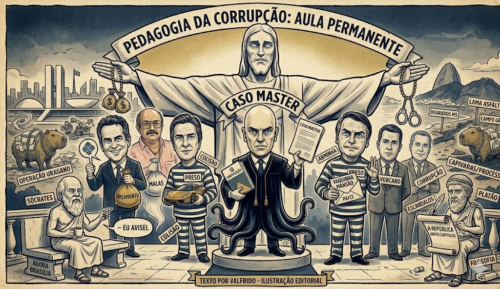 Até lá, o Brasil continuará assistindo a essa curiosa pedagogia da corrupção — uma aula permanente em que os personagens mudam, os métodos evoluem, mas a moral da história insiste em permanecer exatamente a mesma.